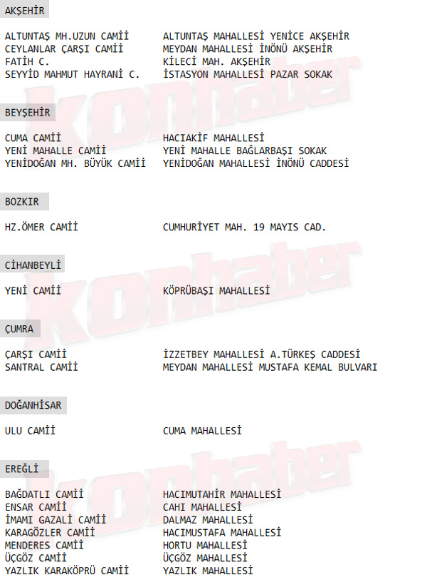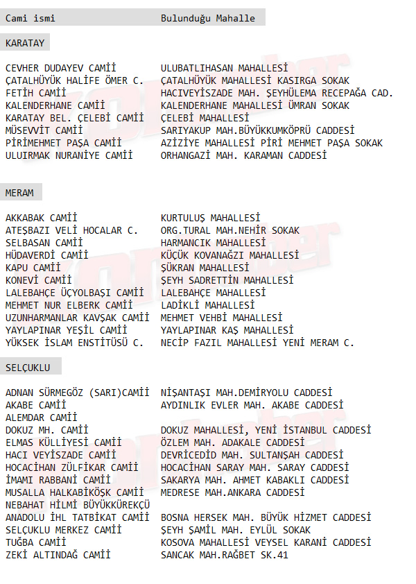 Konya'da bu yıl 32'si merkez ilçelerde olmak üzere toplam 59 camide hatimle teravih namazı kıldırılacak.