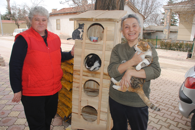 Konya'da bir kadın kediler için ev yaptırdı.
