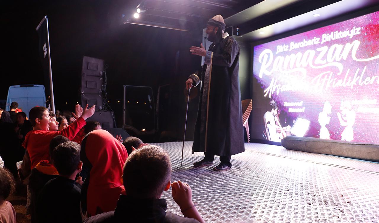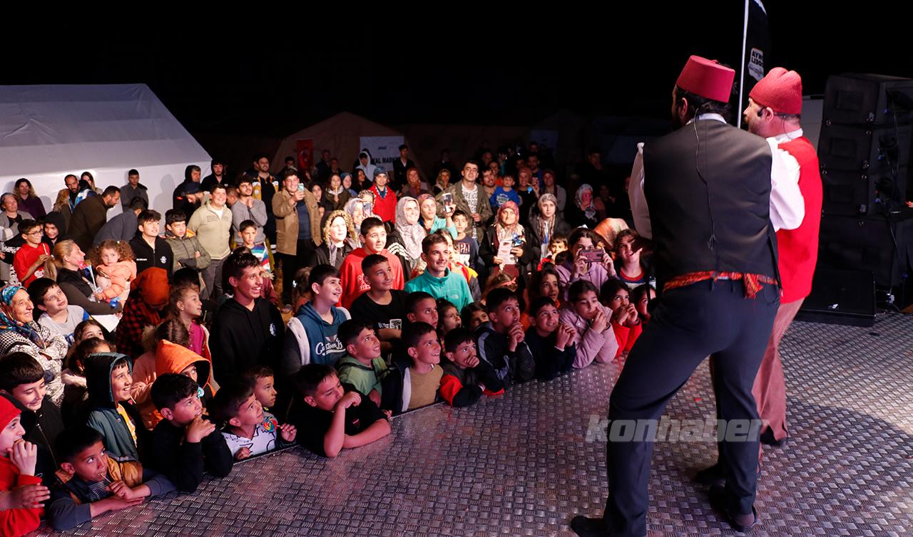 Kahramanmaraş merkezli depremlerin yıkıma uğrattığı Hatay'da afetzedeler, çadır ve konteyner kentleri gezen Konya Büyükşehir Belediyesi "Mobil Sahne" tırındaki etkinliklerle ramazanın manevi atmosferini yaşıyor.