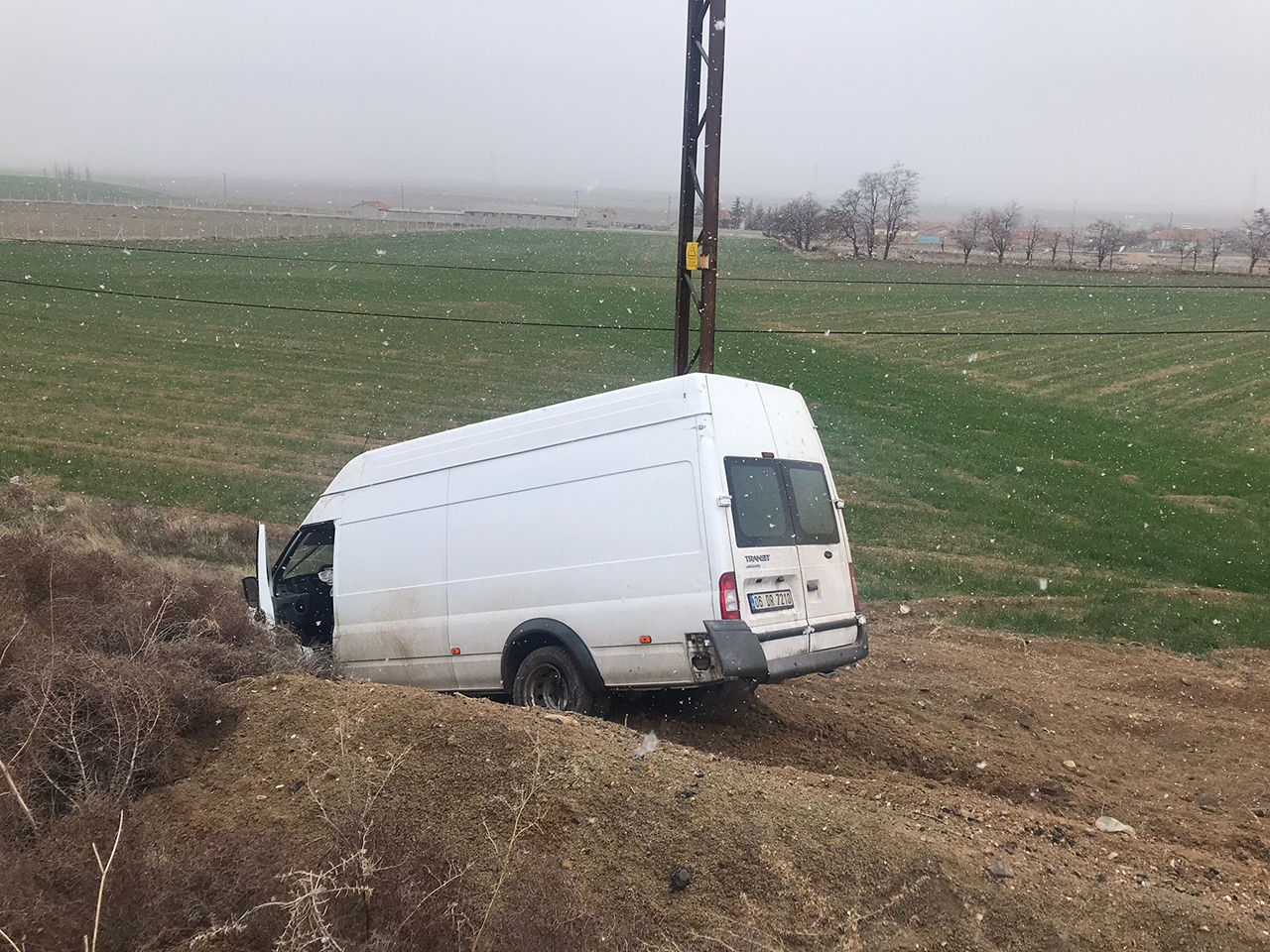 Ankara-Konya kara yolunda kamyonet şarampole devrildi. Meydana gelen kazada sürücü yaralandı.