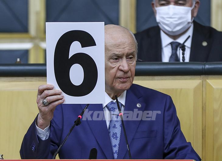 Tarkan'ın şarkısının muhalefet tarafından ısrarla iktidara karşı yazıldığının söylenmesi üzerine şarkıya musallat olunduğu yorumunda bulunan Bahçeli, 6 rakamı ile gönderme yaptı.