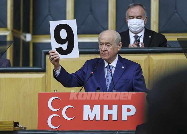 Bahçeli, "Tarkan bir şarkı sözü yazmıştır. Tarkan geçecek diyor, bunu da Anadolu'ya yakın bir şiveyle söylüyor. Elbet geçecek, sorunlar bitecek, salgın geçecek, dertler bitecektir. Mesele bakmak değil görmektir. Yuvarlak masa çevresinde kurulan tuzaktır, kumpastır. Türkiye'nin sırtına bindirilmek istenen ağır külfettir" dedi.