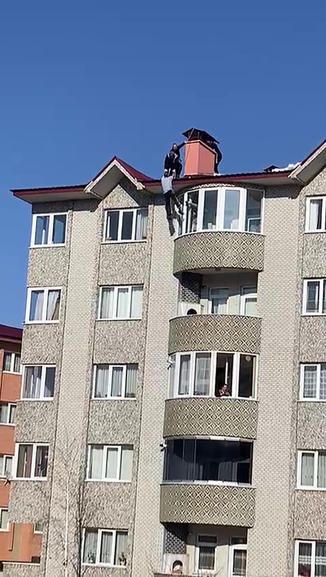 Erzurum'da 6 katlı binanın çatısındaki karı temizlerken ayağı kayan 3 çocuk babası Hüseyin Ergün (51), beline bağladığı iple düşmekten kurtuldu. Binanın bacasına sardığı ipin bir ucunu da beline dolayan Ergün, “5 dakika asılı kaldım. Hayatım film şeridi gibi gözümün önünden geçti” dedi.