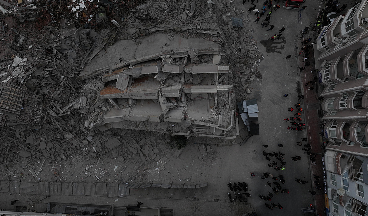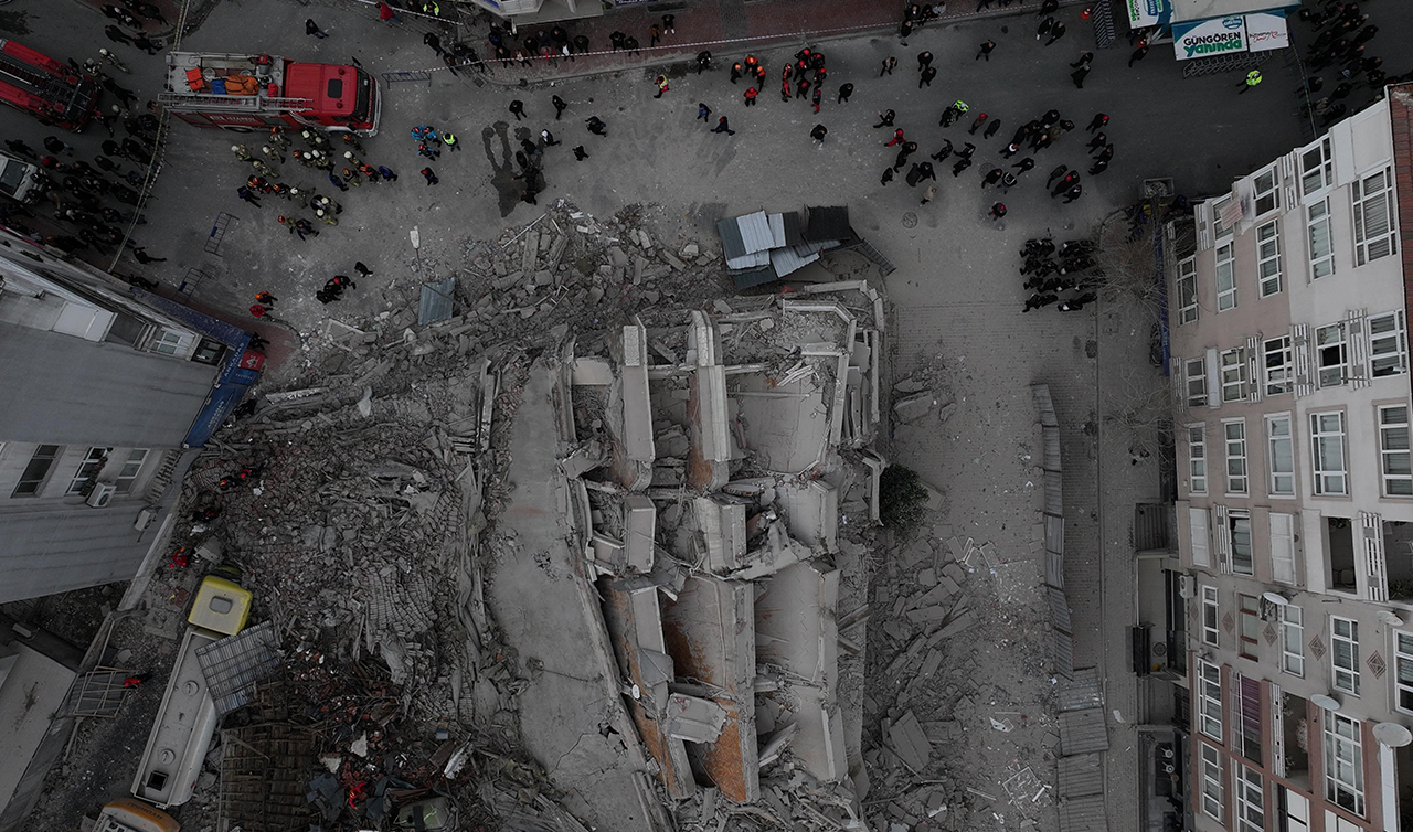 Ekiplerin olay yerindeki çalışması sürüyor. Bu arada, binanın çökme anı çevredeki güvenlik kameralarınca kaydedildi.