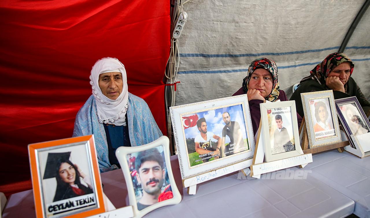Oğlu Ramazan için eylem yapan anne Mevlüde Üçdağ da evladına kavuşmadan HDP il binası önünden ayrılmayacağını belirtti.Oğlundan 9 yıldır haber alamadığını anlatan Üçdağ, "Başımı yastığa koyduğumda hep seni düşünüyorum oğlum. Orası senin yerin değil. Ne olursun gel, teslim ol, bu hasretliği bitir, gözümdeki yaşı sen dindir." diye konuştu.