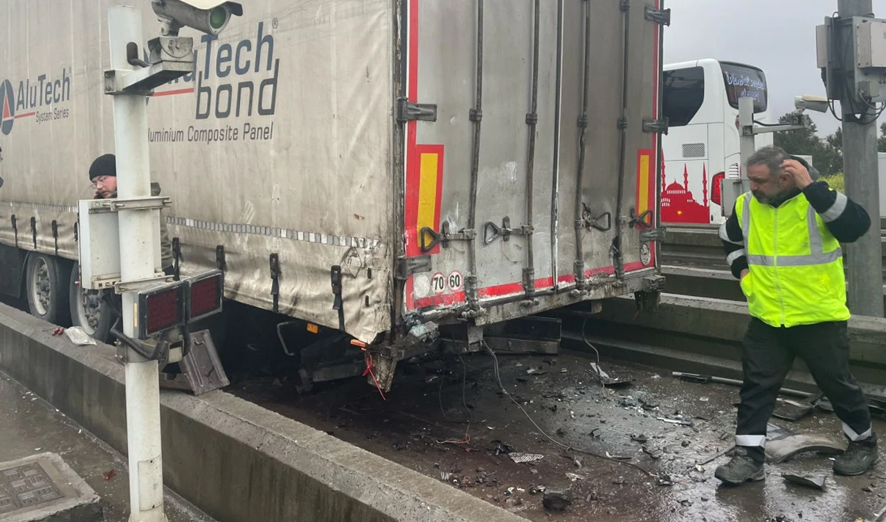 Pendik Kuzey Marmara Otoyolu'nda Ankara istikametinde hafif ticari araç, tıra arkadan çarptı. Çarpmanın etkisiyle otomobil tırın altına girdi, 1 kişi hayatını kaybetti.