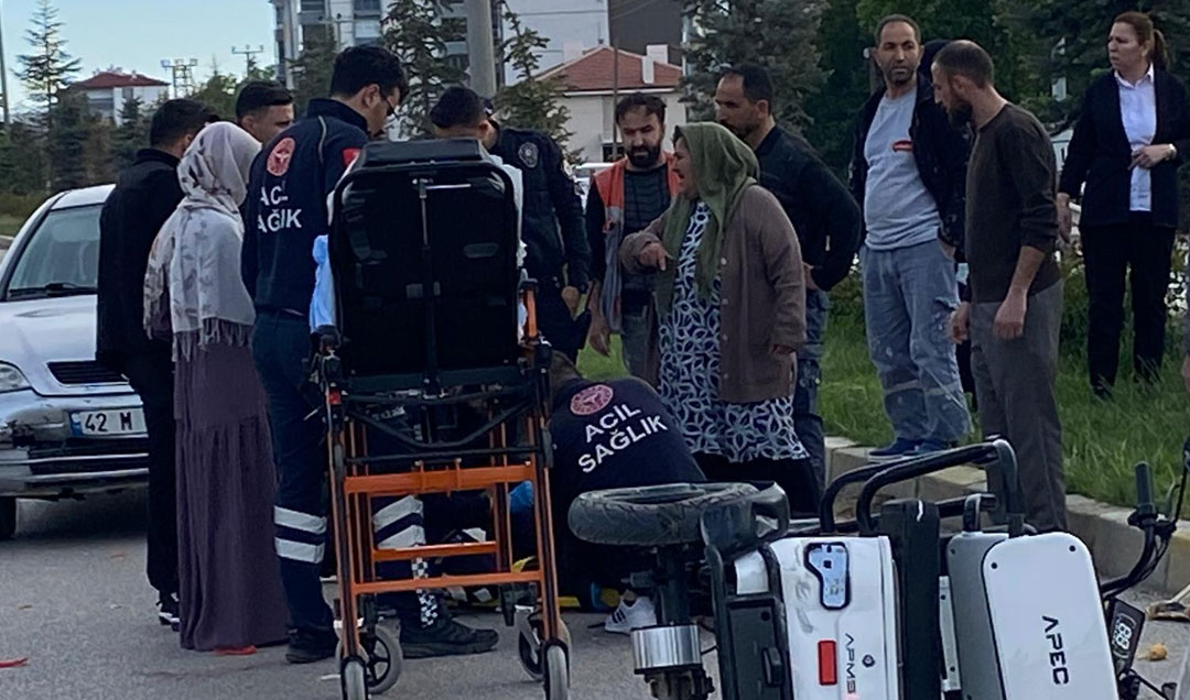 Kaza, Konya-Ankara kara yolu üzerinde Ankara Caddesi'nde meydana geldi. Alınan bilgiye göre Aysun E. (46) idaresindeki elektrikli Moped ile Emre T. (26) yönetimindeki 42 M 7657 plakalı otomobil çarpıştı.