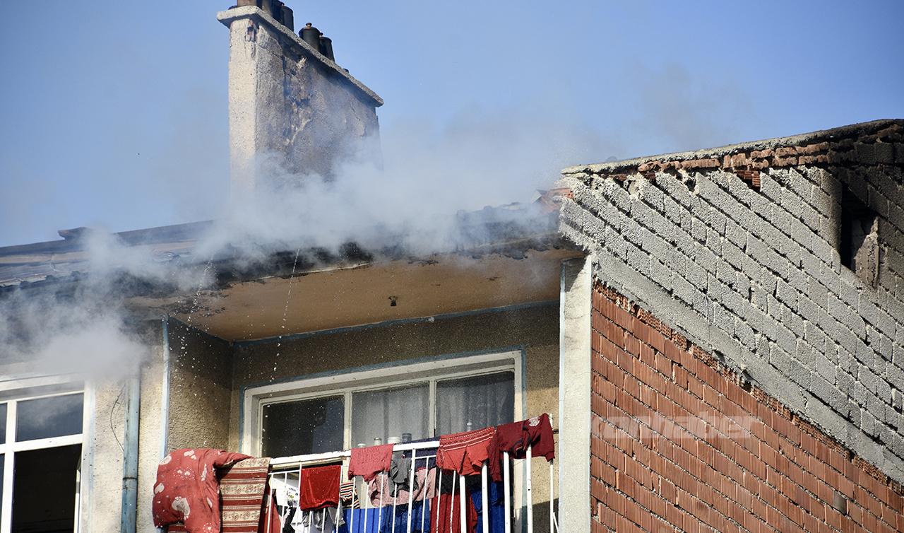 Konya'da 4 katlı apartmanın çatı katında çıkan yangın, itfaiye ekiplerince söndürüldü.