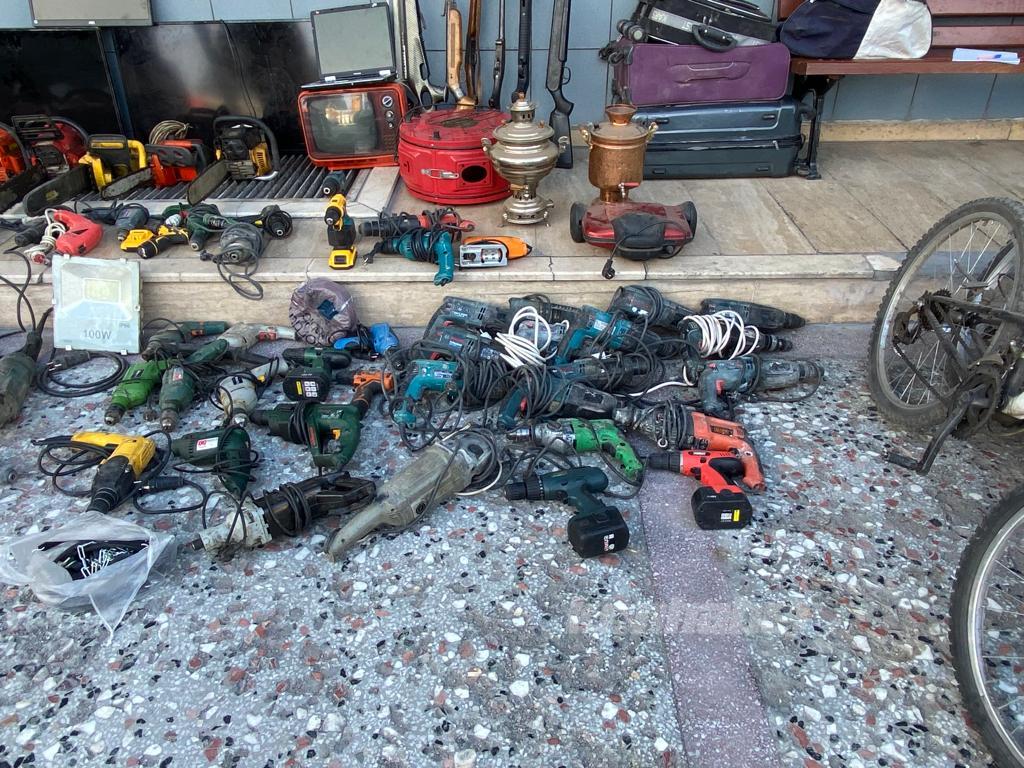 Depo olarak kullanılan adrese yapılan baskında, bağ evleri ve iş yerlerinden çalındığı düşünülen 11 bisiklet, 2 av tüfeği, 4 havalı tüfek, 1 laptop, 12 benzinli ve elektrikli testere, 5 LCD televizyon, 18 şarjlı vidalama makinesi, 28 adet matkap ve çeşitli elektronik malzemeler ele geçirildi.