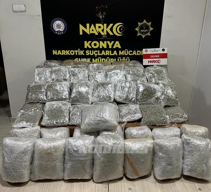 Konya'da kullandığı kamyonda 64 kilogram skunk ele geçirilen şüpheli tutuklandı.