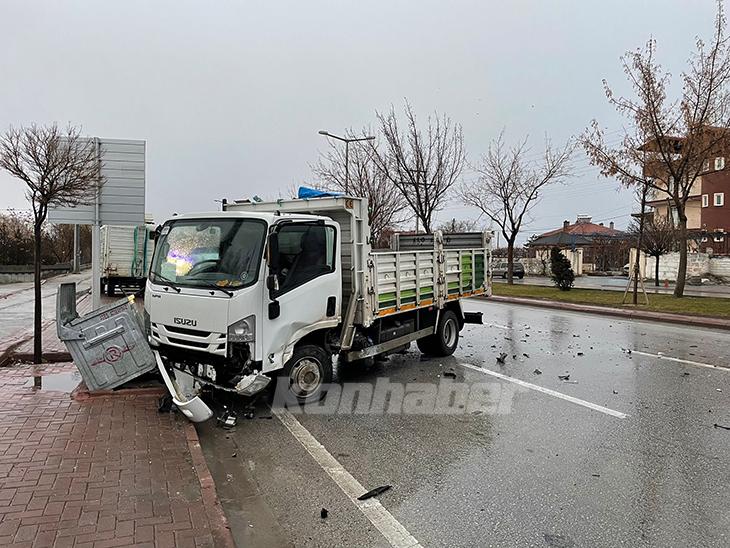 Kaza, sabah 08.00 sıralarında Konya Ereğli Caddesi, Karaman Yolu üzerinde meydana geldi. Alınan bilgiye göre Sabri Boduk idaresindeki 42 ABL 669 plakalı belediye temizlik aracı ile Yasin Koca idaresindeki yabancı plakalı araç çarpıştı.