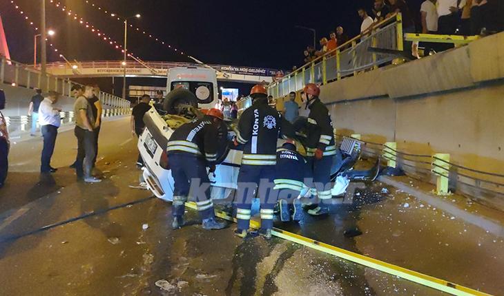 Konya'da kontrolden çıkan otomobil alt geçide düştü. Otomobilde bulunan 2 kişi sıkışırken, olay yerine Konya İl Emniyet Müdürü Engin Dinç'te geldi. Yaralılar ise itfaiye tarafından çıkartıldı.