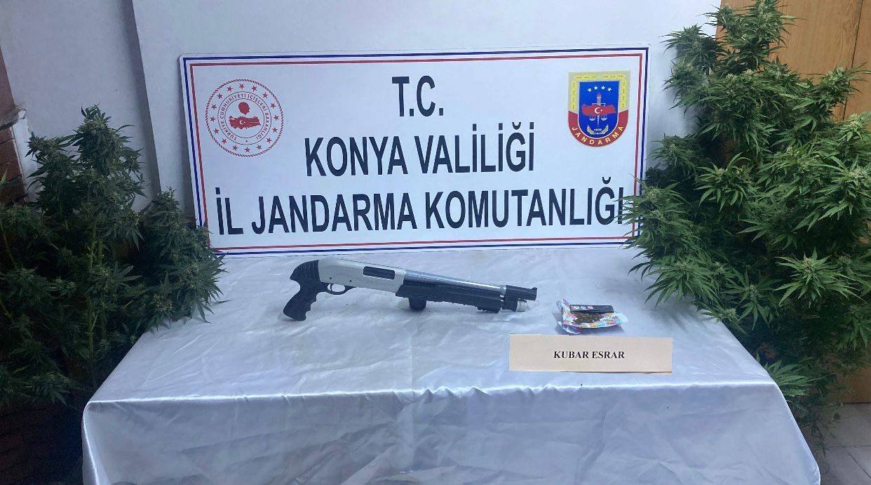 Sarayönü ilçesinde Ş.Y ve S.Y isimli kişilerin ev ve tarlasında yapılan arama sonucunda 8 bin 600 gram kubar esrar maddesi, 36 kök kenevir bitkisi ve 1 adet ruhsatsız av tüfeği ele geçirildi.