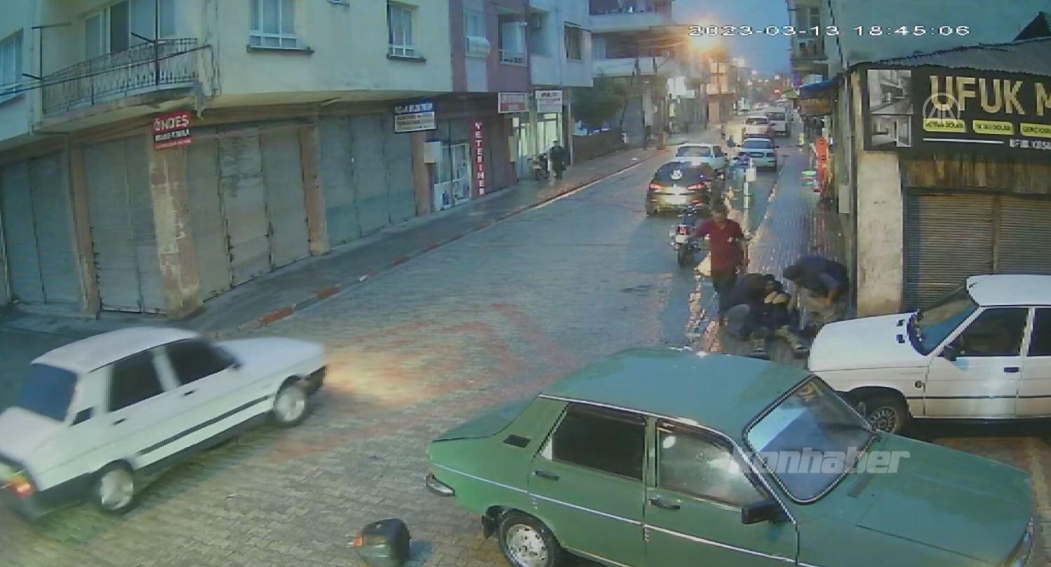 Osmaniye'de, otomobil sürücüsünün, aracıyla çarptığı motosikletliyi sarılarak teselli etme anı güvenlik kamerasına yansıdı.
