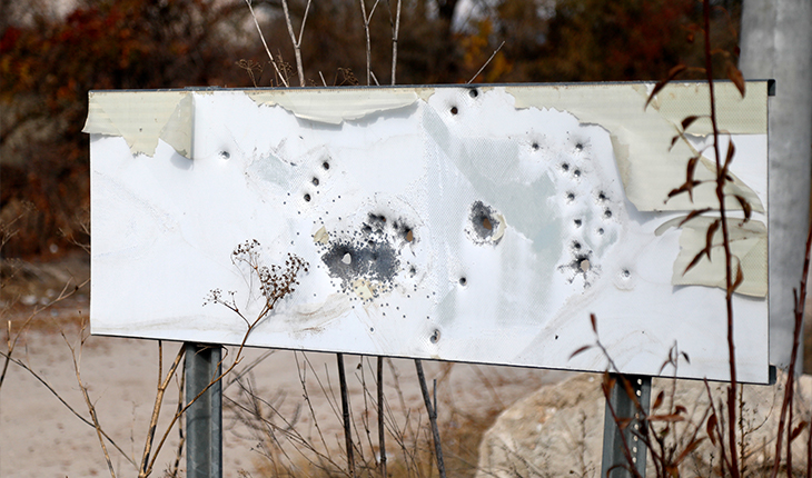 Diğer yandan mahalleye giriş yapılan yoldaki iki yönlendirme tabelasının kurşunların hedefi olduğuna dikkati çekti. Kimliği belirsiz kişi ya da kişilerin defalarca ateş açtığı tabelaların kullanılamaz halde olduğu görüldü. İsimlerini paylaşmak istemeyen bazı mahalle sakinleri de bu türden olayların mahallede sıklıkla yaşandığı, tabela ve benzeri alanların bazı kişiler tarafından hedef haline getirildiğini söyledi.