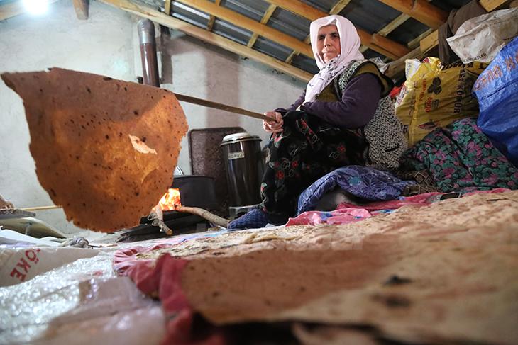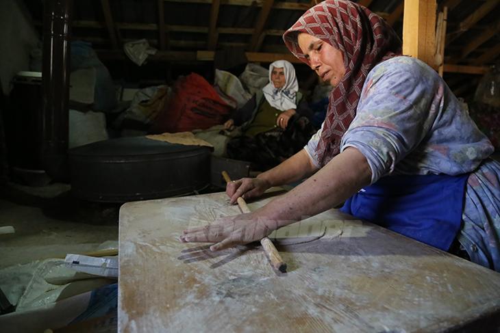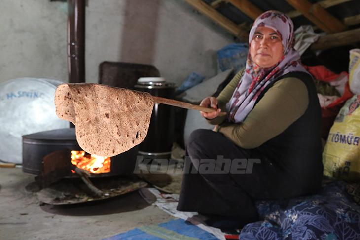 Konya'nın Orta Toroslardaki Hadim ilçesinde yaşayan 58 yaşındaki Meryem Sevinç, yaban armutlarını kurutarak elde ettiği unla yufka ekmek yapıyor.