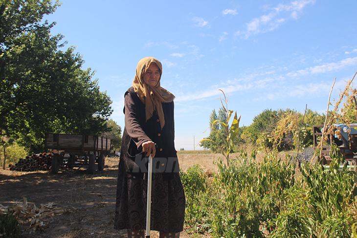 Fatma nine, önceden bahçeyi ektiğini de anlatarak, "Ben bahçeyi ekerdim su vardı, patates ekerdim elimle, sulardım, sökerdim çuvallara doldururdum gel Süleyman dördünü sen götür, gel Mevlüd sen götür derdim. Biber eker pazarda satardım. Ama 6 senedir ne pazar yüzü görüyorum, ne ekerim, ne kaldırırım. Vaktim kalmadı, ekemem. Bu sene ’elden gelen öğün olmaz, o da vaktinde gelmez’ dedim. Domates, biber diktim. Domates kurudu kaldı ama biberden yedim de kuruttum da kışın yiyeceğim inşaallah” diye konuştu.