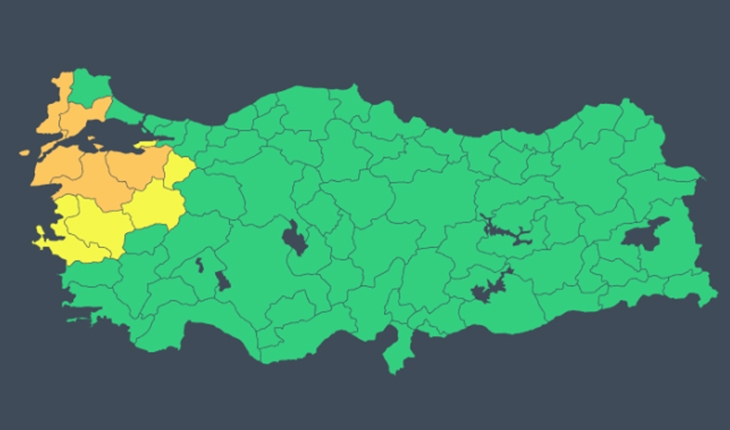 Turuncu kodla uyarılan iller: Balıkesir, Bursa, Çanakkale, Edirne, Tekirdağ