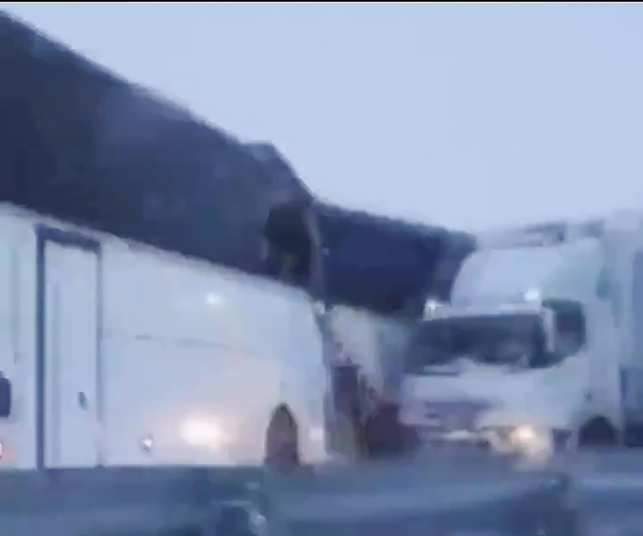 Kaza, saat 07.45 sıralarında Sarıkamış ilçesi Mescitli köyü yakınlarında meydana geldi. Gece yağan kar yüzünden kayganlaşan yolda kayan plakası ve sürücüsü henüz öğrenilemeyen TIR'a, arkadan gelen yolcu otobüsü çarptı.