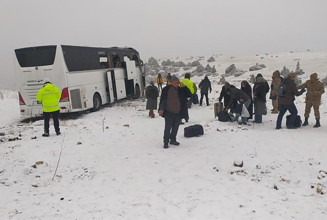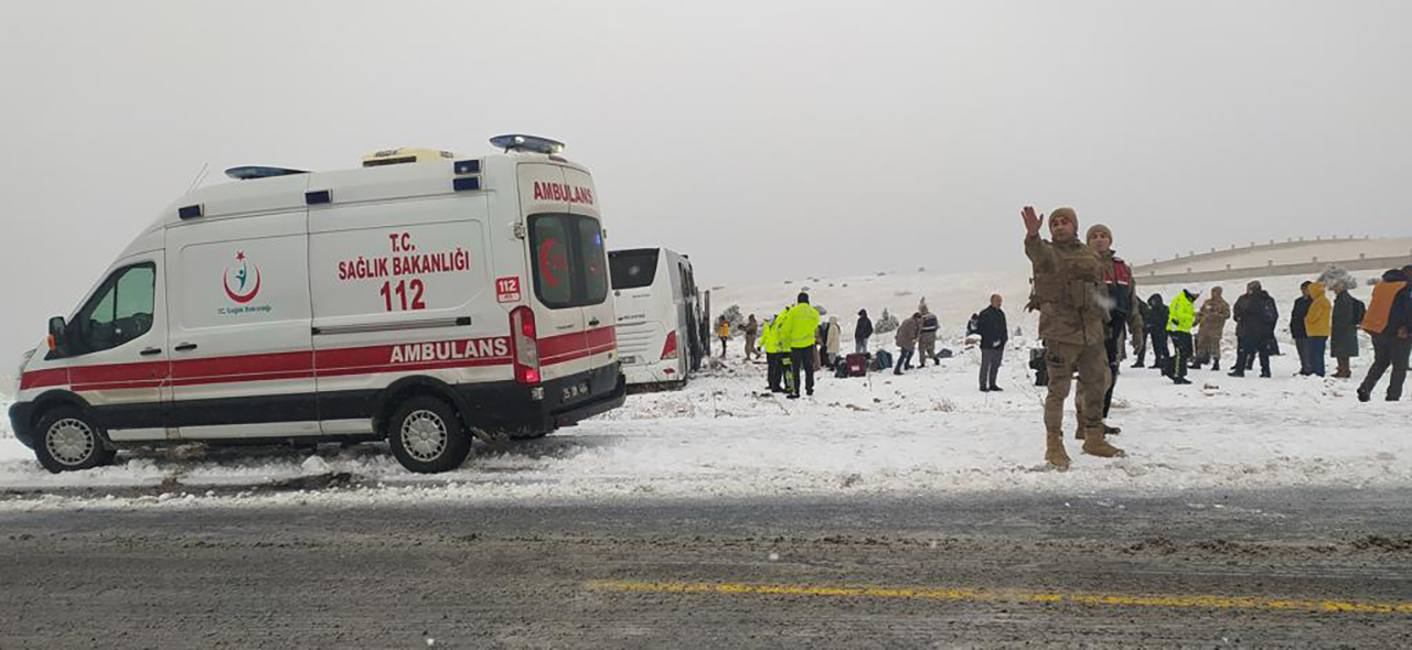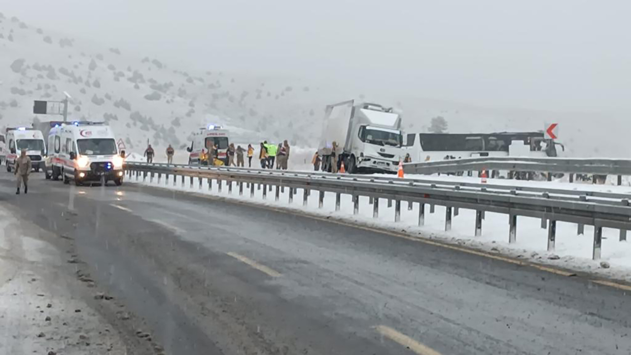 Bir başka yolcu otobüsü de kayarak önündeki otobüse çarptı. İhbar üzerine bölgeye AFAD, jandarma, itfaiye ve sağlık ekipleri sevk edildi.