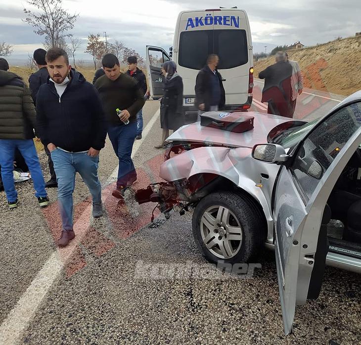 Akören Belediye Başkanı İsmail Arslan’ın da içinde bulunduğu 42 SU 594 plakalı resmi araç, 35 P 9568 plakalı araç ile Meram İlçesi Karaağaç Mahallesi çıkışı Hatunsaray Mahallesi girişinde kafa kafaya çarpıştı.