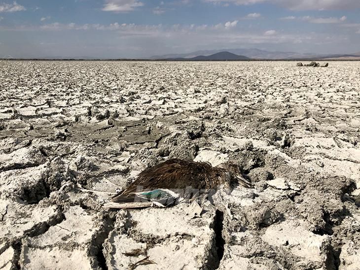 Mevsimsel kuraklığın yanı sıra kaçak kuyular, iklim değişikliği ve gölü besleyen nehirlerin üzerine inşa edilen yapılar nedeniyle suların çekildiği gölde, türkülere konu olan yeşil başlı yaban ördeği başta olmak üzere çok sayıda kuş türü ölüsüne rastlandı.