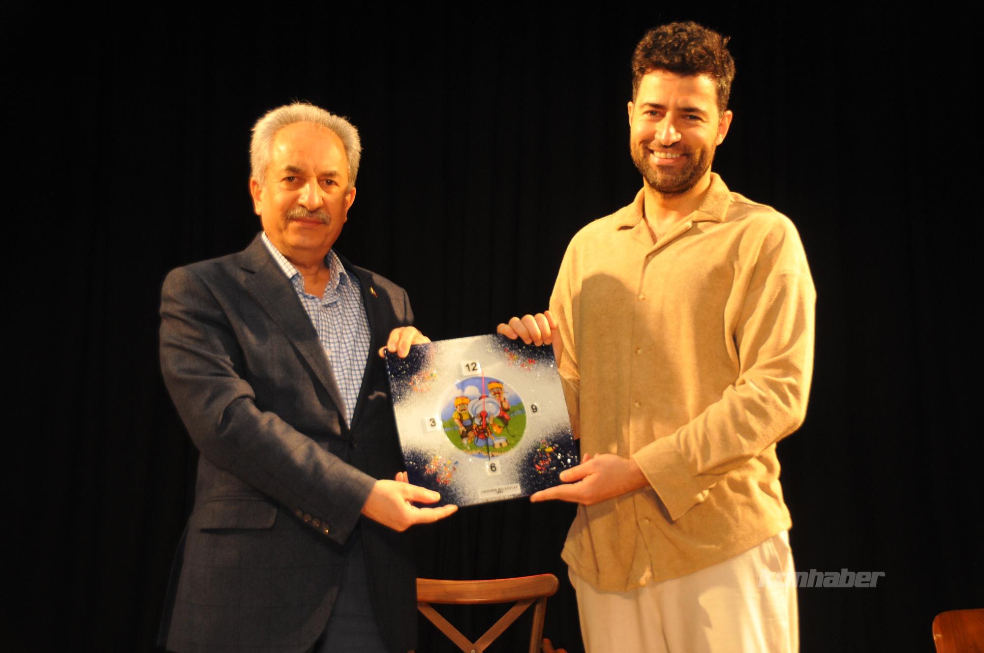 Oyun sonunda seyirci tarafından yoğun alkış alan sanatçıya, Akşehir Belediye Başkanı Dr. Salih Akkaya tarafından bir plaket takdim edildi.