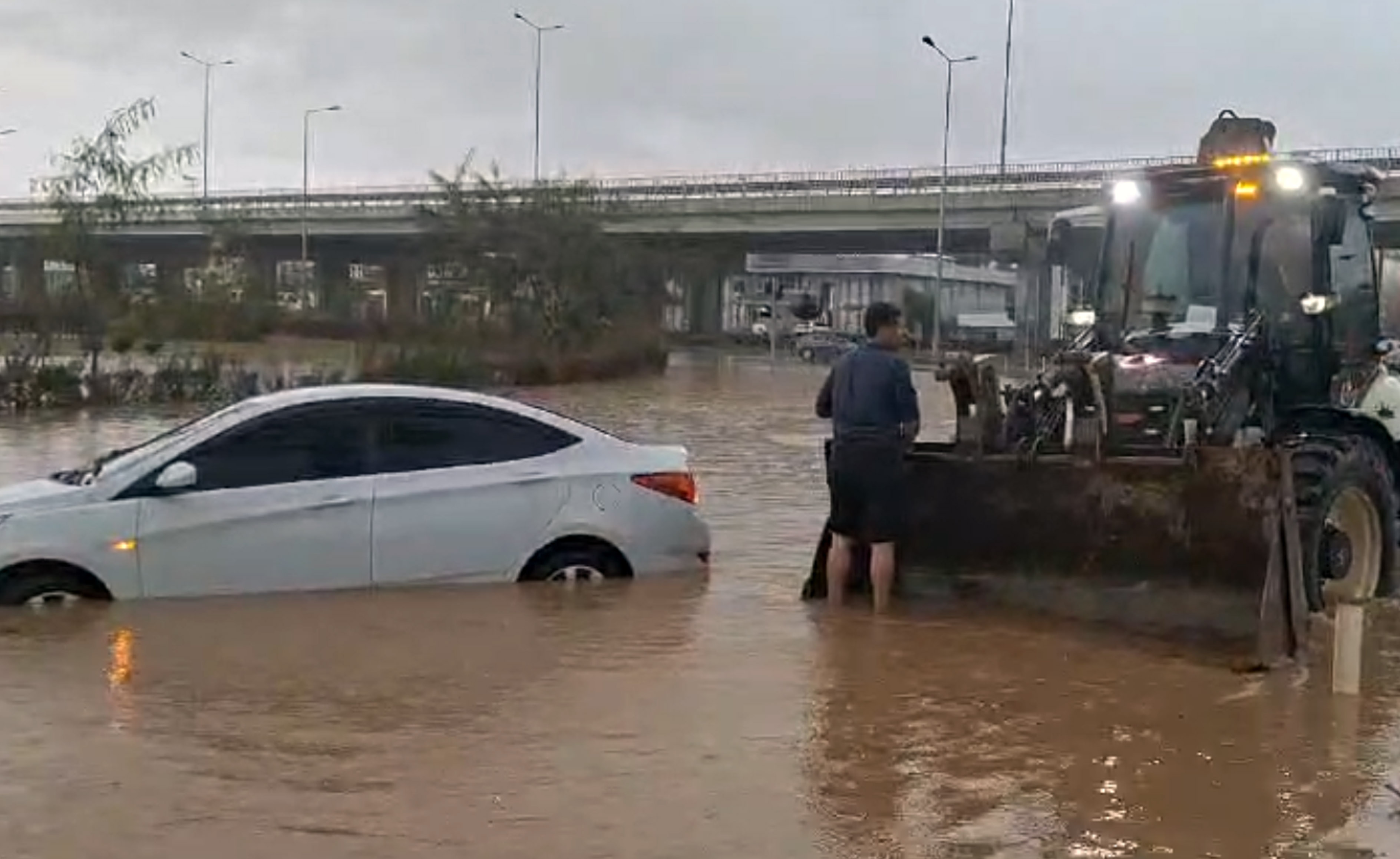 Side Mahallesi'nde göle dönen Kazım Karabekir Caddesi'nde araçlar mahsur kaldı. Araçlarından çıkamayanları ekipler, iş makinesiyle kurtardı.