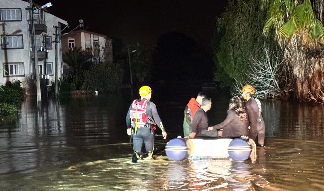 Burada da araçlarında mahsur kalanlar da iş makinesiyle kurtarıldı. Bazı caddelerde suyun tahliyesi için iş makineleriyle çalışma başlatıldı.