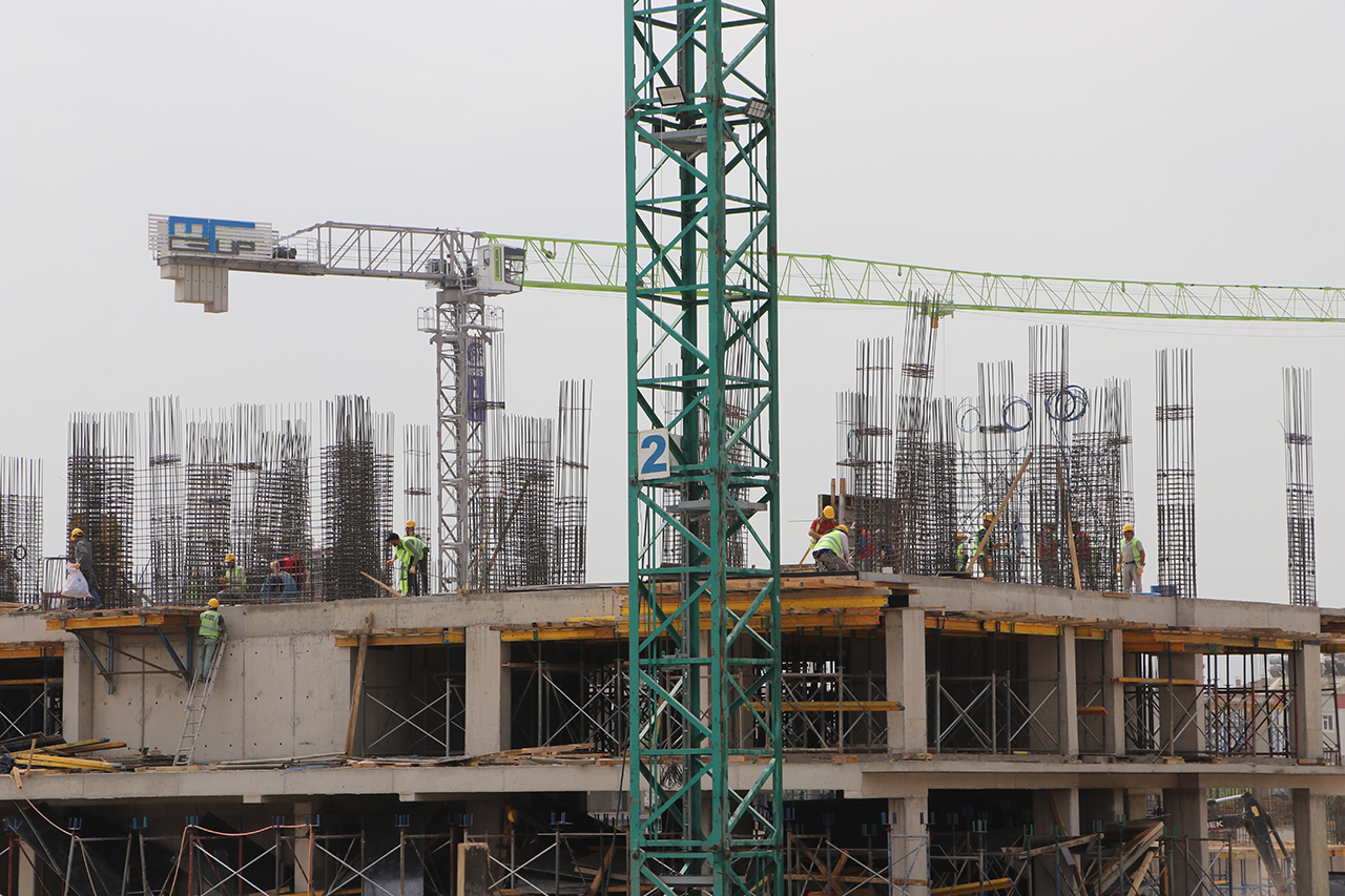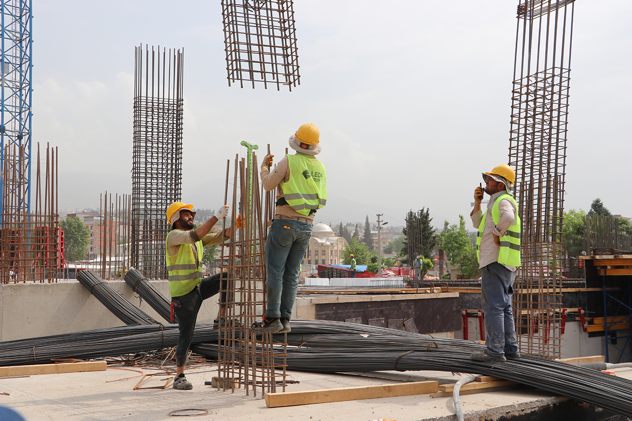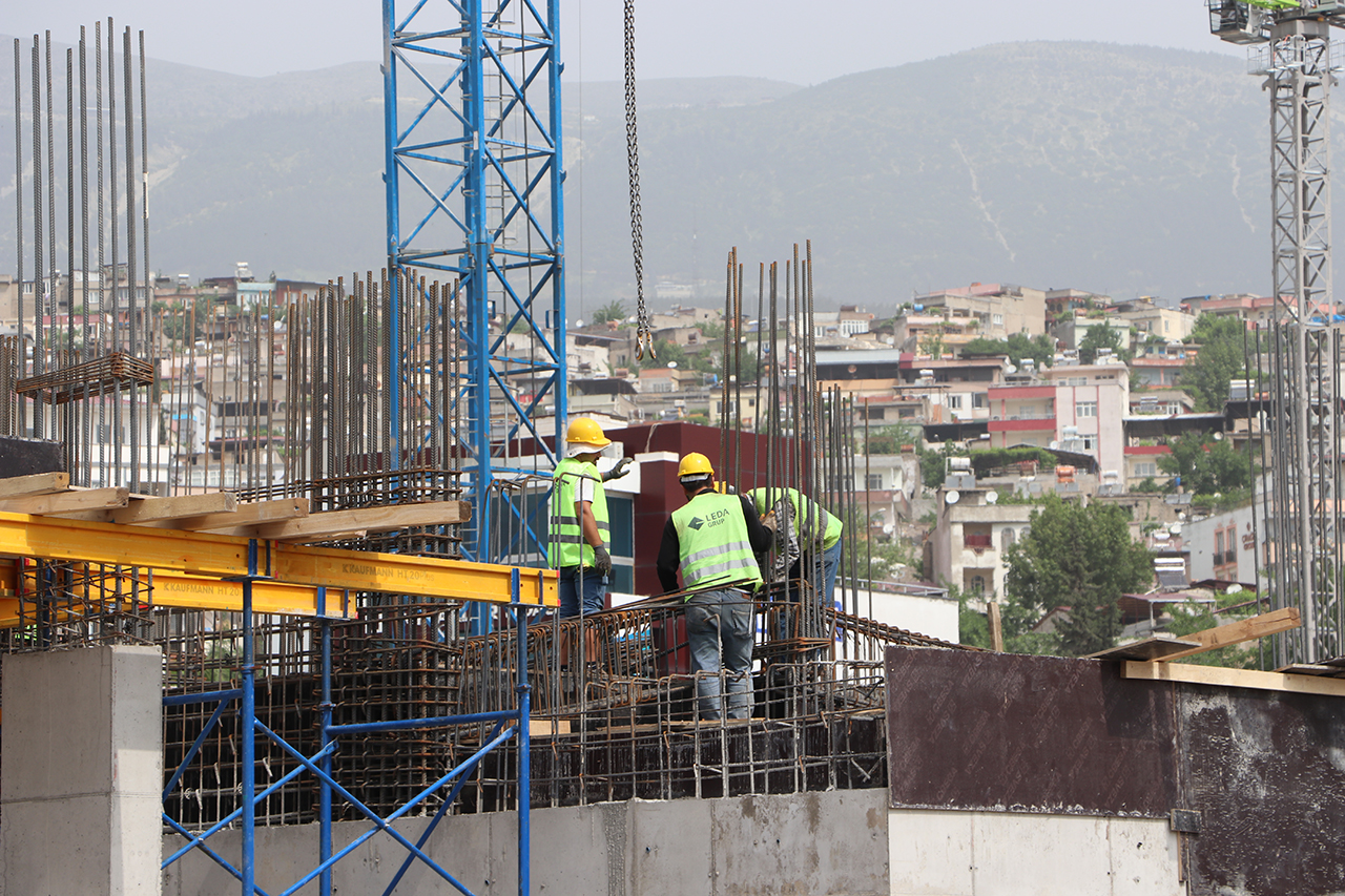 Depremde, evleri yıkılan veya ağır hasar gören afetzedeler için inşa edilen projede görev alan işçiler, kentin konut ihtiyacını karşılamak ve bölgenin gelişimine katkı sağlamak için 1 Mayıs'ta da mesailerini ara vermeden sürdürdü.