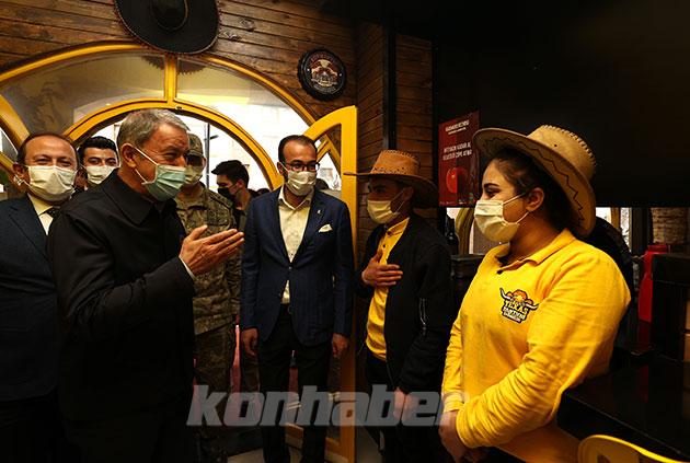 Milli Savunma Bakanı Hulusi Akar, beraberindeki TSK komuta kademesi ile şehir merkezindeki esnafı ziyaret etti, çay ocağında vatandaşlarla bir araya geldi.
