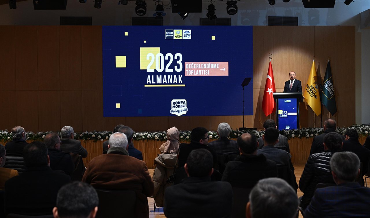 Geçtiğimiz yıl 6 Şubat’ta yaşanan ve 11 ili etkileyen Kahramanmaraş merkezli depremlerde Büyükşehir Belediyesi olarak Hatay’da yaptıkları çalışmaları detaylı şekilde anlatan Başkan Altay, devamında 31 ilçede tamamlanan ve devam eden yol ve altyapı çalışmalarından Büyük Larende Dönüşümüne, ilçelere kazandırılan atık su artırma tesislerinden 230 yeni otobüse, Sille Cephaneliğinin taşınmasından Konya Yeni Sanayi Sitesi’ne, Çatalhöyük Tanıtım ve Karşılama Merkezi’nden KONYARAY Banliyö Hattı’na, Cephanelik Kentsel Dönüşümünden Ağır Bakım Kentsel Dönüşümüne, Dünya Belediyeler Birliği Başkanlığı’ndan tarıma, spordan eğitime, sosyal ve kültür faaliyetlerine kadar birçok alanda hayata geçirdikleri yatırımları ve hizmetleri paylaştı.