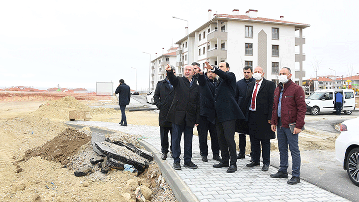Konya Büyükşehir Belediye Başkanı Uğur İbrahim Altay ve Selçuklu Belediye Başkanı Ahmet Pekyatırmacı, TOKİ tarafından Ardıçlı bölgesinde yapımı sürdürülen konutlarda incelemelerde bulundu.