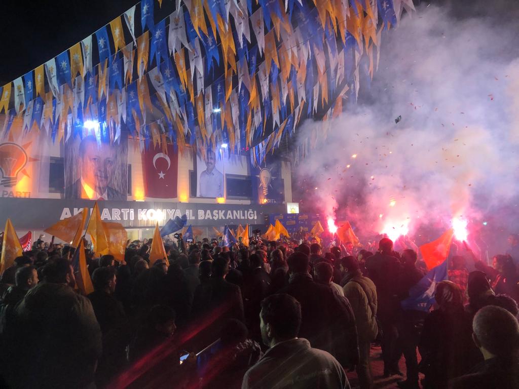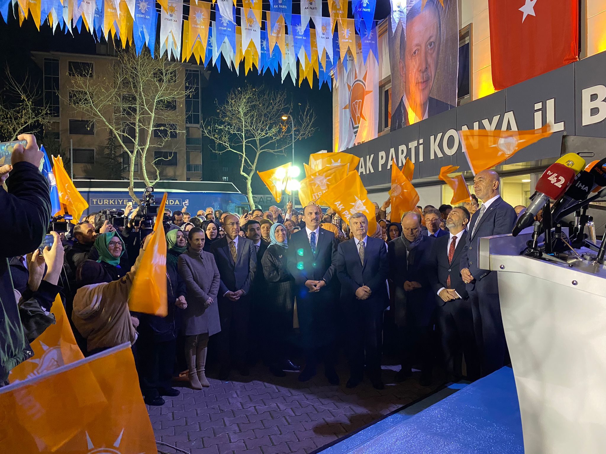Bununla birlikte coşkulu kalabalık AK Parti Konya İl Başkanlığı önünde Konya Büyükşehir Belediye Başkanı ve Başkan adayı Uğur İbrahim Altay'ı karşıladı.