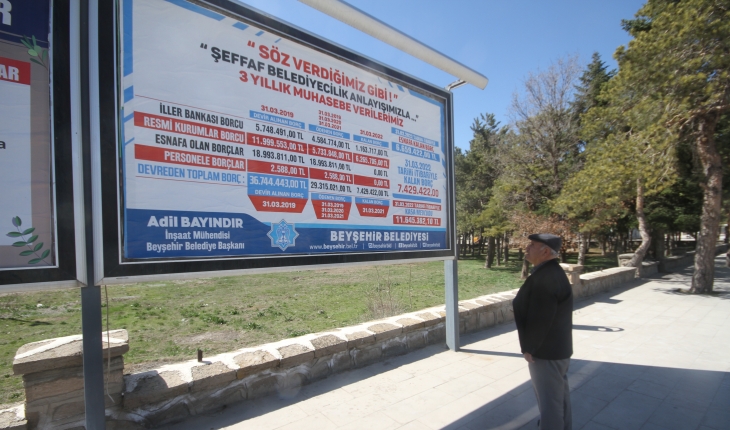 Beyşehir Belediyesi üç yıllık muhasebe verilerini, kent merkezinde bulunan billboardlara astırılarak halka duyurdu.