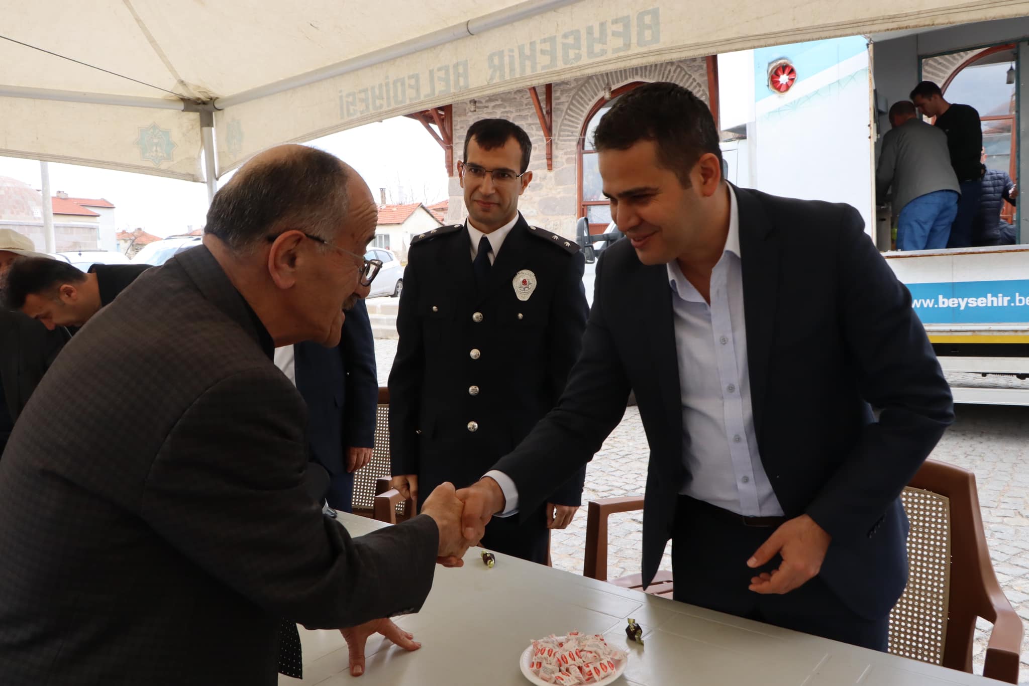 İlçe Kaymakamlığı tarafından Eşrefoğlu Camisi önünde öğlen namazını müteakip düzenlenen bayramlaşma programına Beyşehir Kaymakamı Mehmet Kemal Akpınar, Beyşehir Belediye Başkanı Adil Bayındır, kurum amirleri, siyasi parti ve sivil toplum kuruluşlarının temsilcileri ile vatandaşlar katıldı.