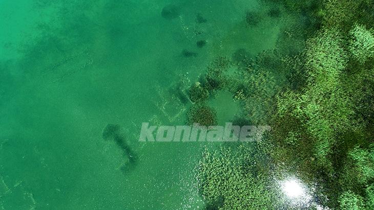 Beyşehir Gölü'nün batı kıyısındaki Kubadabad Saray Külliyesi kazılarında dronla yapılan belgeleme çalışmaları sırasında bulunan, göl kıyısından yaklaşık 100 metre açıktaki bina kalıntıları için inceleme başlatıldı.