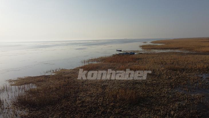 Sazlık alanın önüne kadar kuraklık olan kıyılar var. Kıyılar çamur balçıktı, kurudu. Artık yürüyebilirsiniz de gezebilirsiniz de. Bunlar hep suyun hacminin, miktarının azalmasından kaynaklanıyor." diye konuştu.