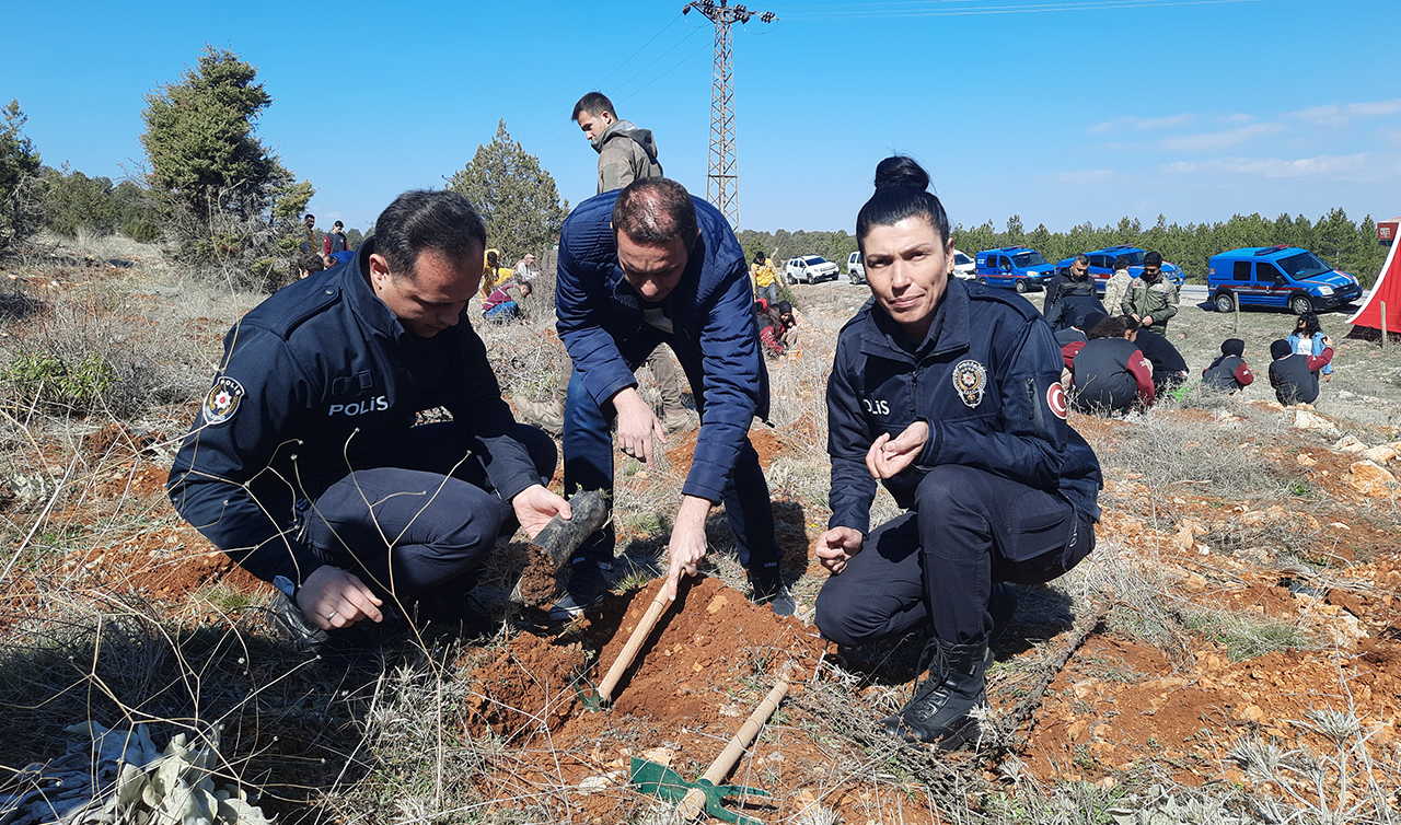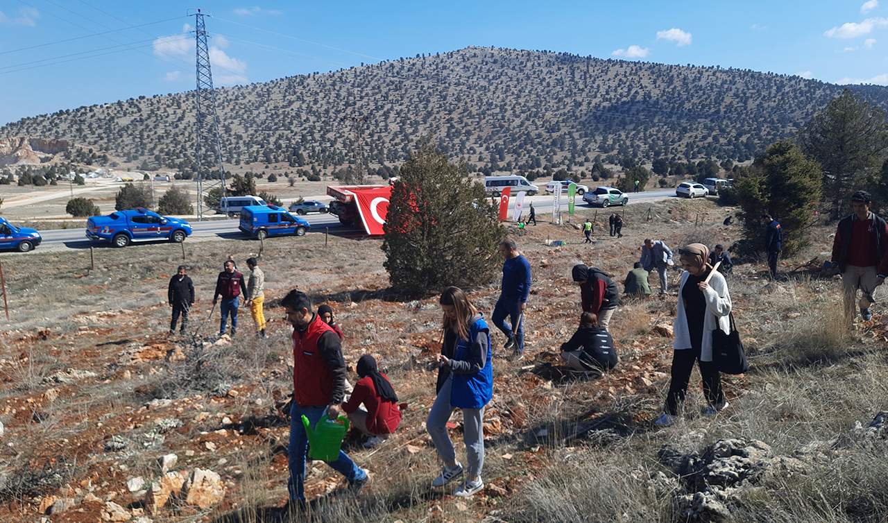 Konya'nın Bozkır ilçesinde "Orman Haftası" etkinlikleri kapsamında fidanlar toprakla buluşturuldu.
