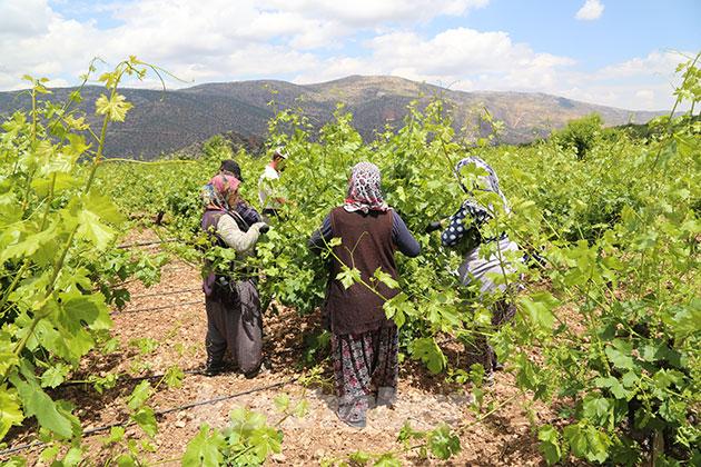 39 bin dekar alanda üzüm yetiştiriciliği yapılan ilçede hasat edilen yaprakların kilosu tarlada 20 liradan alıcı buluyor.