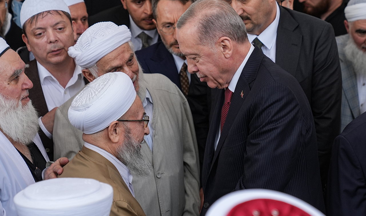 Cenaze törenine katılan Cumhurbaşkanı Erdoğan, cemaat mensuplarına başsağlığı diledi.