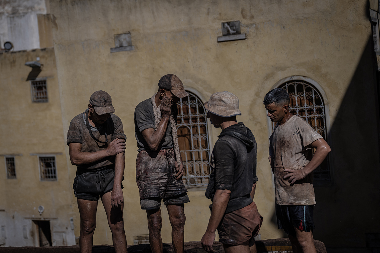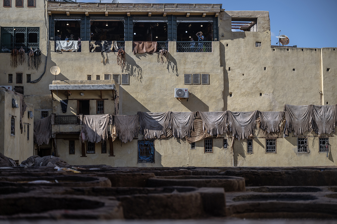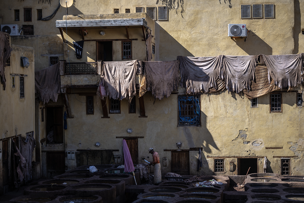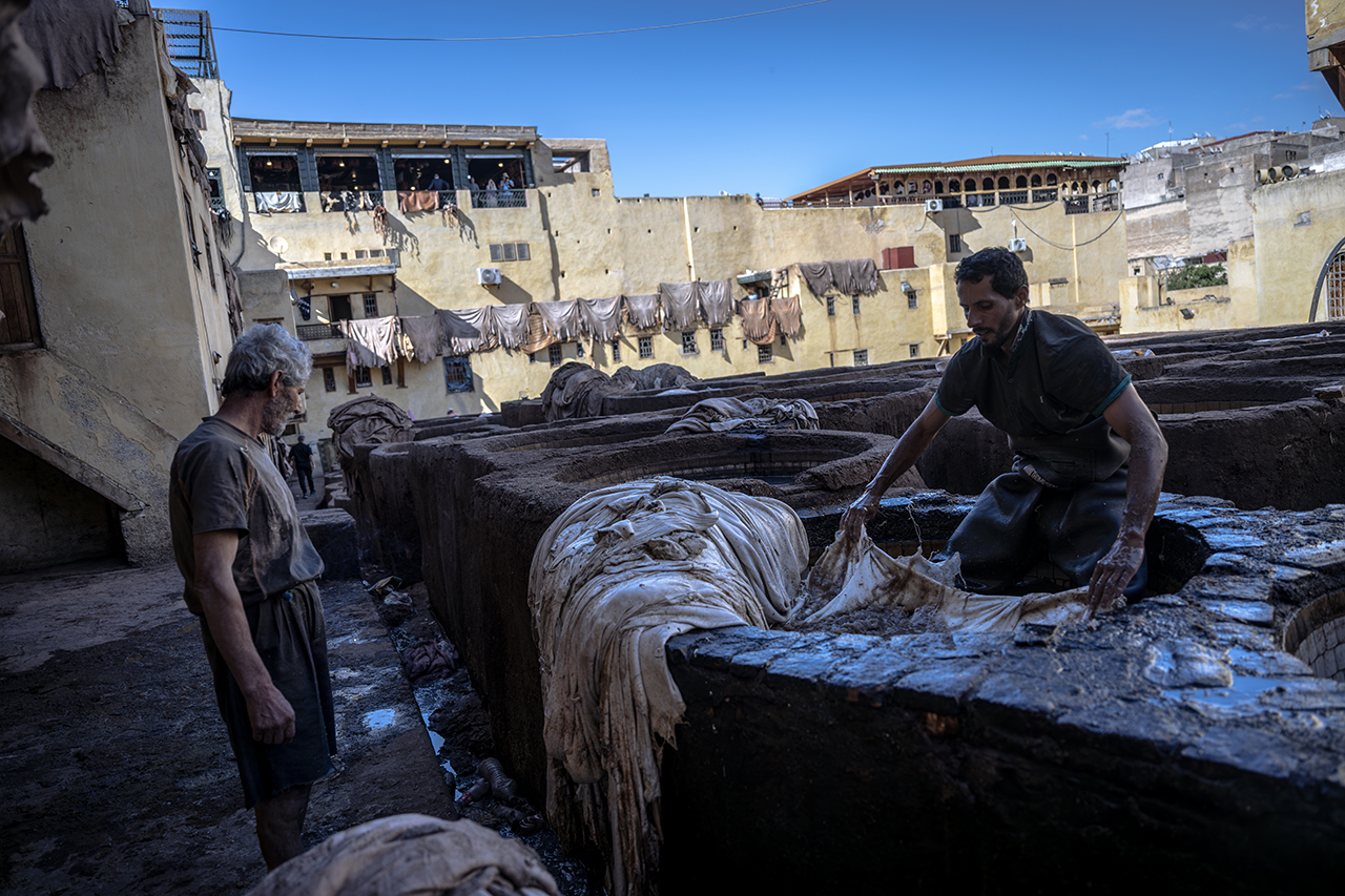 Tarihi 11. yüzyıla dayanan tabakhanede çalışan onlarca işçi, geçmişten bugüne aktarılan geleneksel usullerle kare veya yuvarlak taş kuyular içinde derileri işleyerek renklendiriyor.