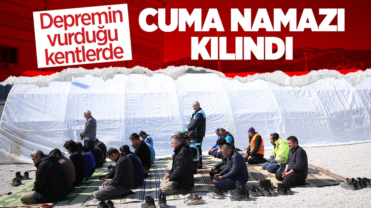 Depremin 3'üncü haftasında cuma namazı için harekete geçen afetzedeler ve yardım için bölgede olan vatandaşlar, yıkılan camilerin avlusunda ve çadır kentlerde saf tuttu.