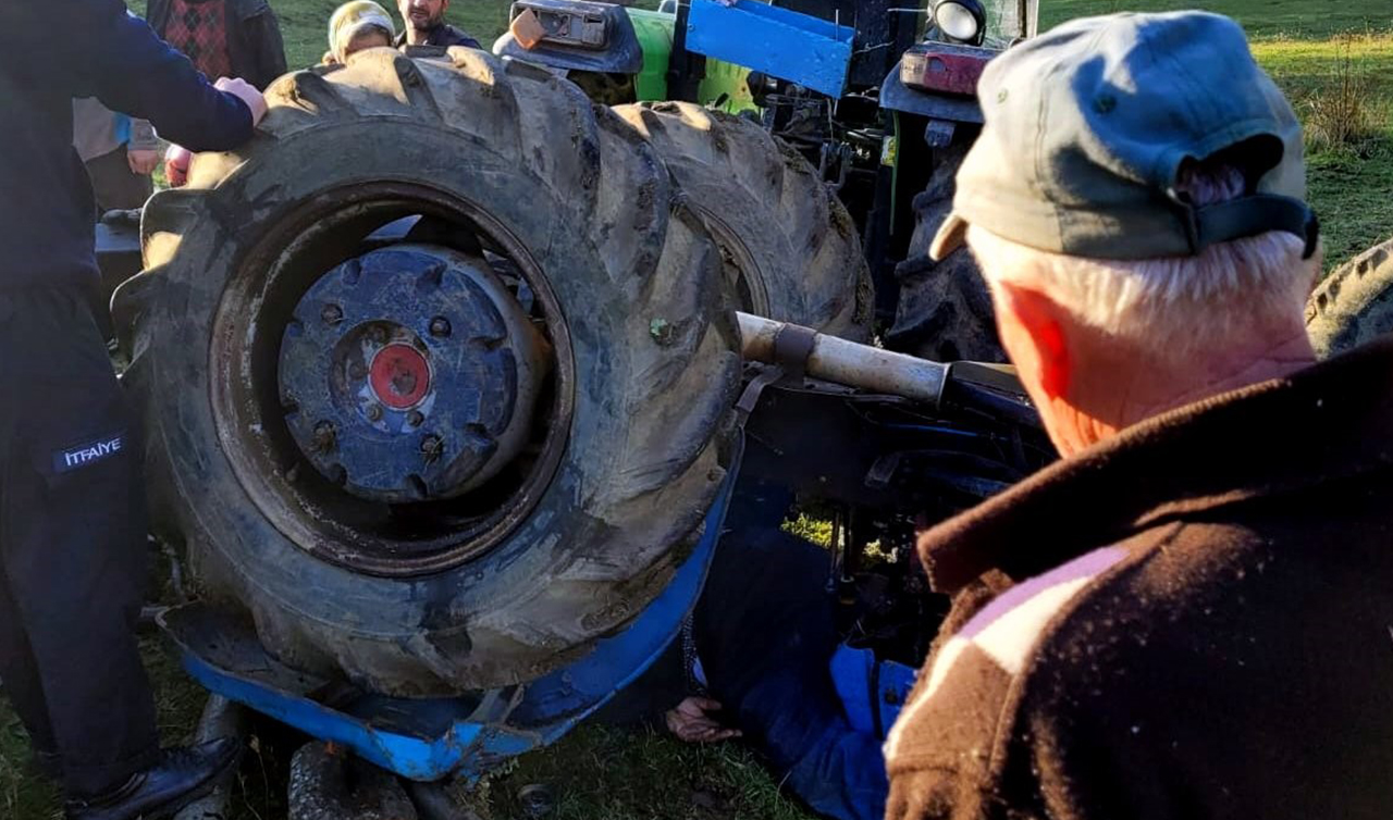 Sürücü traktör altında kalırken durumun haber verilmesi üzerine bölgeye sağlık, itfaiye ve jandarma ekiplerin sevk edildi. Sürücü sıkıştığı yerden kurtarılarak hastaneye sevk edildi. Kazaya ilişkin inceleme başlatıldı.