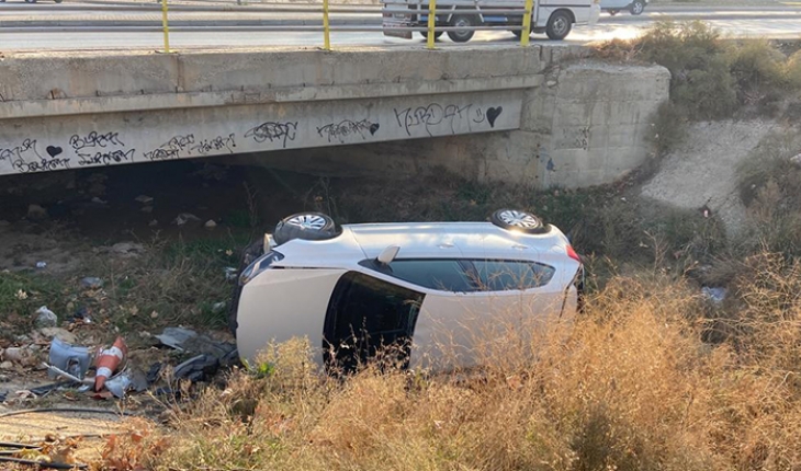 Konya’nın Selçuklu İlçesinde sürücüsünün direksiyon hâkimiyetini kaybettiği otomobil kanala uçtu.