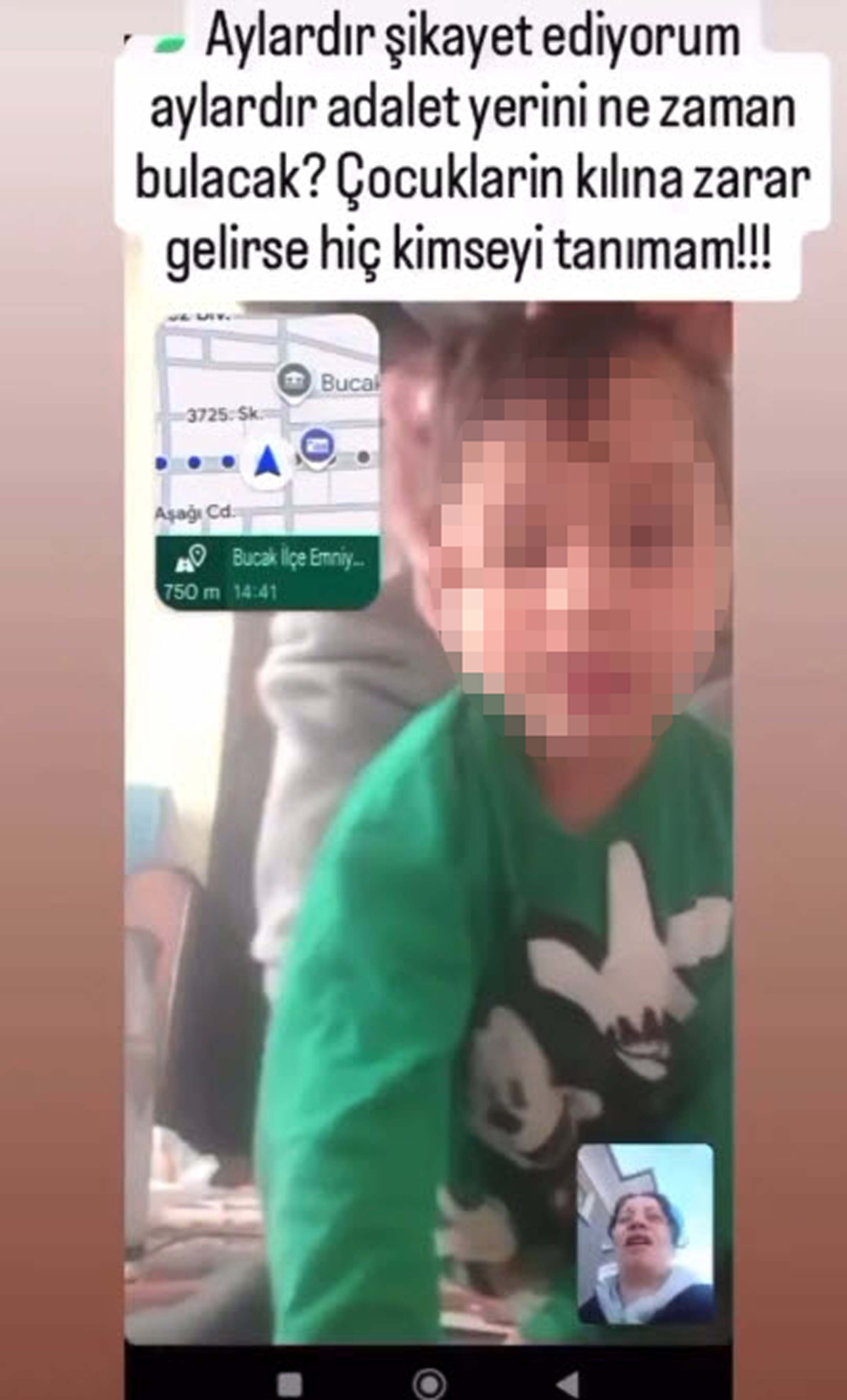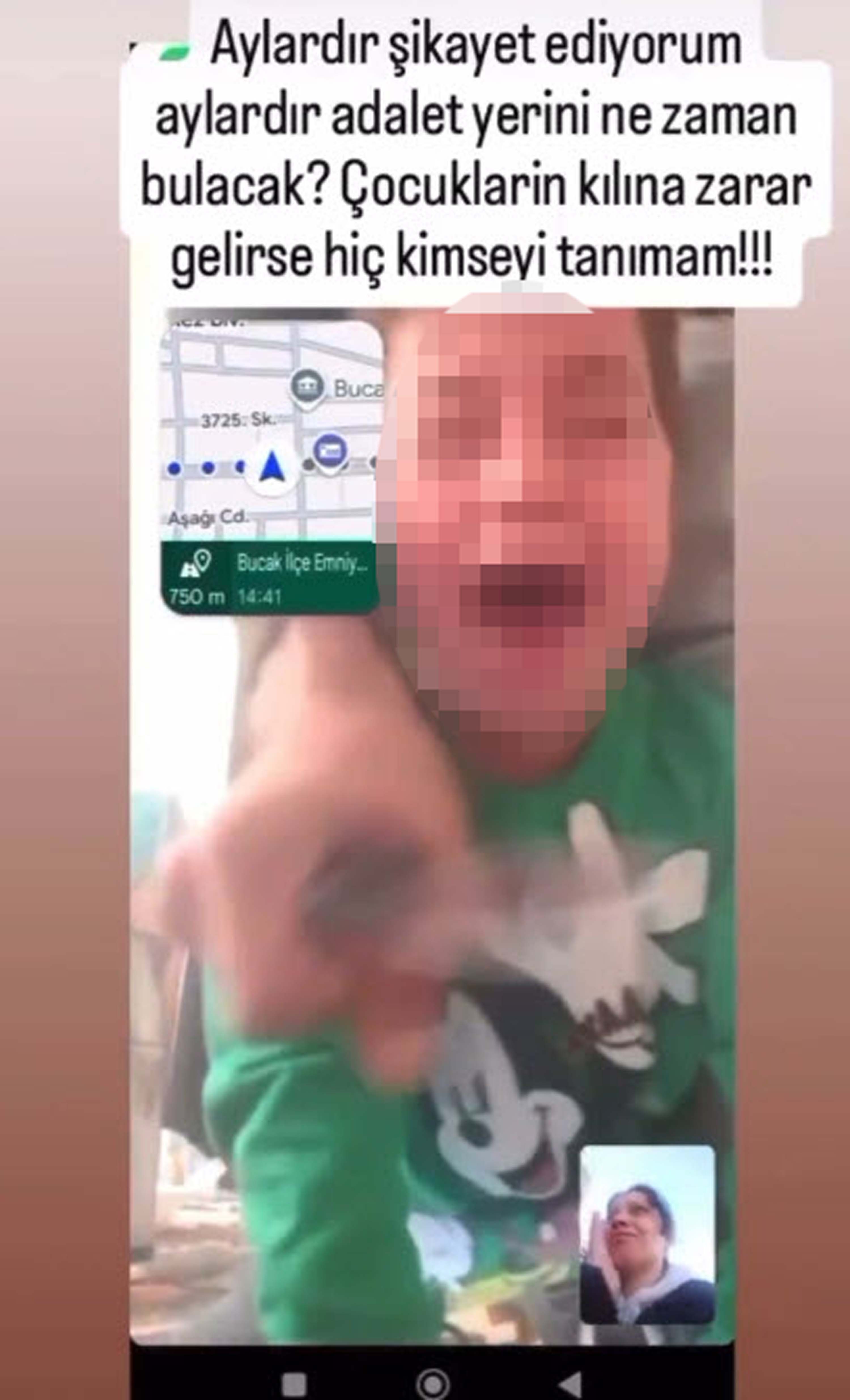 Konuyla ilgili açıklama yapan İzmir Valiliği, açıklamasında 'Bazı sosyal medya hesaplarında 18.11.2024 tarihinde (bugün) paylaşılan görüntülerde, Burdur'da bulunan boşanma aşamasındaki resmi nikahlı eşi F.A.'yı görüntülü arayarak çocuklarıyla tehdit eden baba Ş.A., ilimiz Karabağlar ilçesinde yakalanmış, çiftin iki erkek çocuğu devlet korumasına alınmıştır. Gözaltına alınan şüpheli Ş.A. ile ilgili adli işlemler devam etmektedir.' denildi