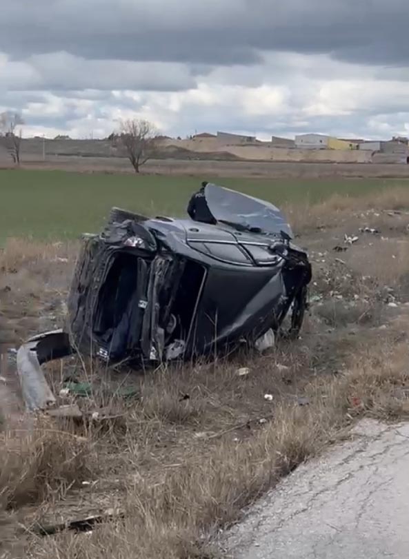 Yol kenarındaki aydınlatma direğine çarpan otomobil, savrularak takla attı. Yan yatarak hurdaya dönen araçtaki Ramazan Gürler ile yanındaki Pınar Çağla Tuna, ağır yaralandı.