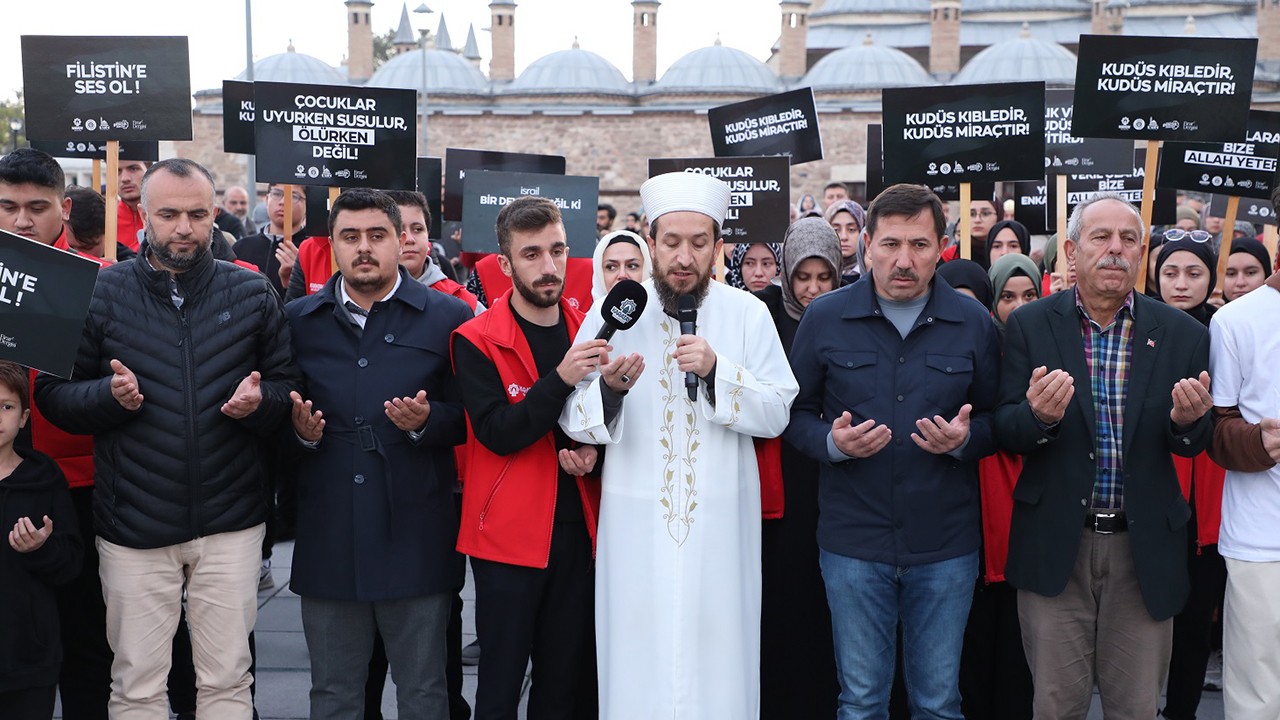 Karatay Belediyesi Kent Konseyi Gençlik Meclisi, İsrail’in Filistin’de Müslümanlara yaptığı zulmü protesto etti. Karatay Belediye Başkanı Hasan Kılca’nın da İsrail’e tepki için Mevlana Meydanı’nda bir araya gelen gençlere ve vatandaşlara destek verdiği programda konuşan Karatay Kent Konseyi Gençlik Meclisi Başkanı Ahmet Babuççu da, Filistin’e yapılan saldırıları şiddetle kınadıklarını belirterek; tüm Müslümanların İsrail’e karşı birlik olması gerektiğini söyledi.