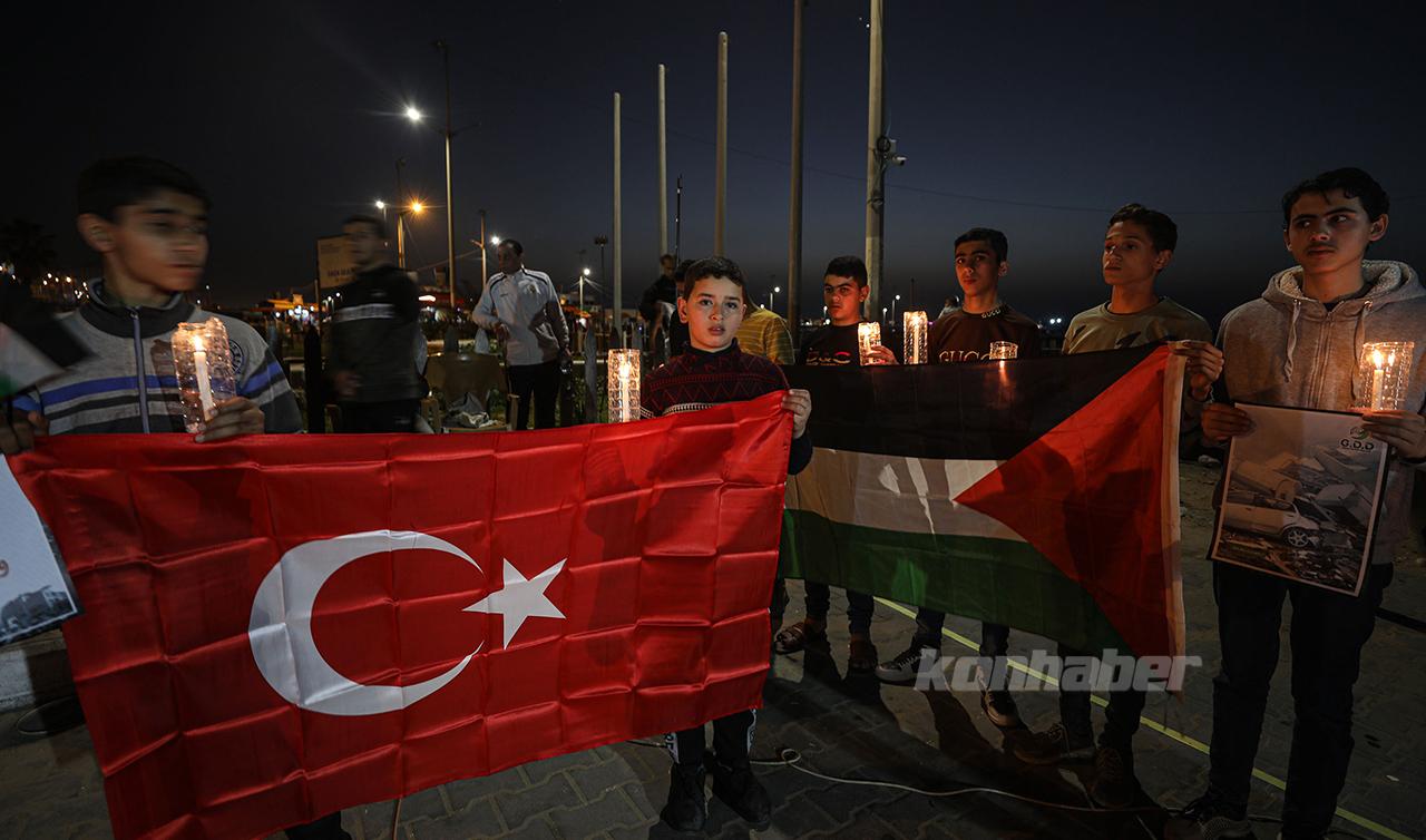 Gazze Destek Derneği tarafından "kalplerimiz sizinle" sloganıyla düzenlenen etkinlik için onlarca Filistinli çocuk, Gazze Limanı'ndaki Mavi Marmara Şehitleri Anıtı yakınlarında toplandı. Etkinlikte Türkiye bayrakları taşındı.