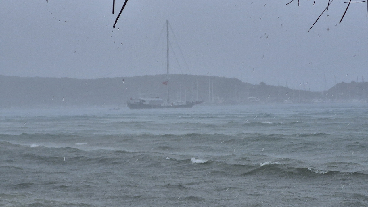 Bodrum'da fırtınanın akşam saatlerinde etkisini kaybetmesi beklenirken, sağanak yağışın salı gününe kadar aralıklarla sürmesi bekleniyor.
